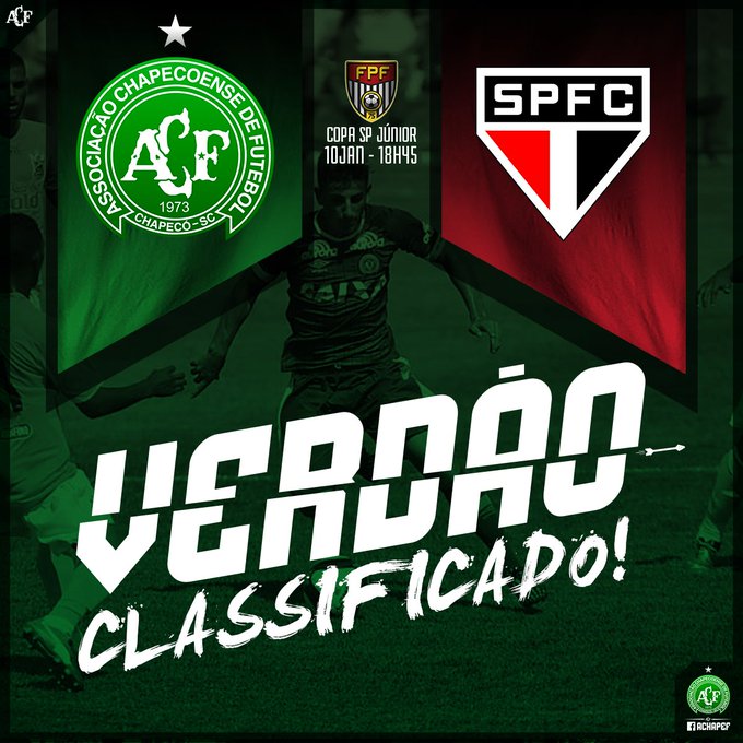 O anoitecer desta terça-feira, 10 de janeiro de 2017 vai ficar na história e no coração dos chapecoenses, catarinenses e na grande maioria dos brasileiros. E eu convido você, meu leitor da América, da Europa, da Ásia, ou de qualquer outro lugar possível no mundo, a compartilhar de minha, de nossa emoção: A equipe de juniores da Associação Chapecoense de Futebol, com atletas de menos de 20 anos de idade, venceu, na cobrança de pênaltis, ao São Paulo Futebol Clube, na Arena Capivari, por 4 gols a 2. Brilhou o jovem goleiro Tiepo, que defendeu duas penalidades e ainda viu uma cobrança dos são-paulinos passar pelo lado de fora de sua baliza esquerda. Certamente que ele defenderia também esta cobrança, pois chegou a tocar, de leve, na bola. Com isso, a Chape passa à terceira fase da Copinha São Paulo de Juniores, devendo se defrontar com a equipe do Capivariano.